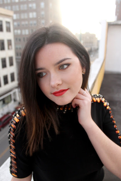 This is one of my all time favorite outfits that I am sure I will be wearing variations of for a long time. I got this top around Christmas time (on sale ;)) for parties and it was perfect. I was so excited when I got it in the mail. It is definitely a statement piece which is what I love about it. I also matched my makeup to the gold copper tones in the beading which I thought turned out pretty cool. I didn't go heavy on eyeliner because I went with a bold red lip BUT if you wore and outfit like this, a smoky eye and a nude lip would be gorgeous.